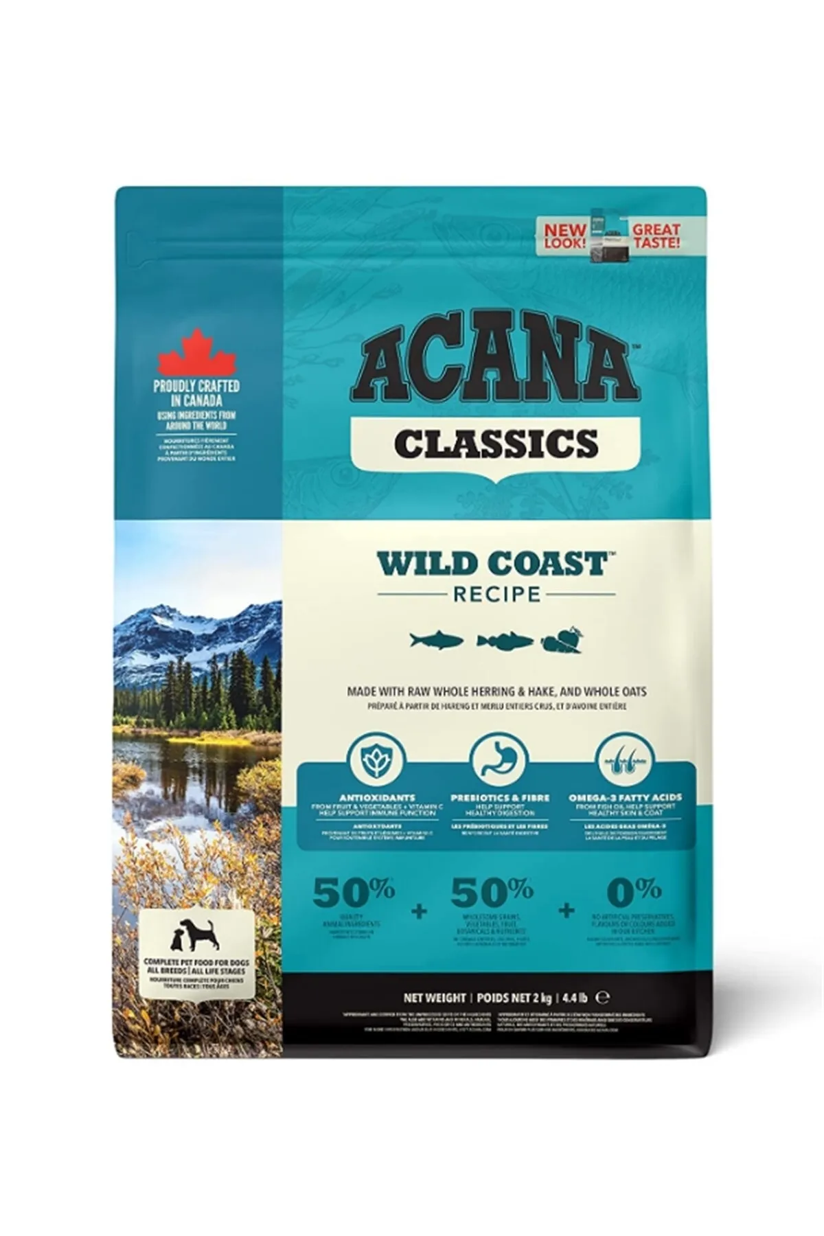 Modern köpekler atalarının yediği gıdaları sadece yiyebiliyor değillerdir aynı zamanda sağlıklarının en üst seviyede olması için buna ihtiyaçları bulunmaktadır.İşte tam da bu sebeple ACANA Wild Coast fayda ve lezzetle dopdolu kuzey Vancouver adasından serbest avlanan ve mutfaklarımıza taze ve bütün olarak gelen sürdürülebilir balık içeriği sunmaktadır.Yüksek glisemikli tahıllar içermeyen ACANA, kondisyonu en üst noktasına çıkarmak için besleyici balık proteini ve omega-3 yağ asitleri ile doludur. ACANA Classics kan şekeri seviyesini stabil tutmak ve yap depolama olasılığını azaltmak için düşük glisemikli işlenmemiş yulaflar içermektedir.Ödüllü NorthStar® mutfaklarımızda özel olarak taze, güvenilir ve sürdürülebilir içeriklerle hazırlanan ACANA’yı seveceğinizi düşünüyoruz.Daha da önemlisi köpeğinizin çok seveceğini düşünüyoruz.
