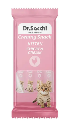 Dr.Sacchi Creamy Snack Kitten Chicken Tavuklu Yavru Kedi Sıvı Ödülü; büyüme çağındaki minik dostlarınızın hem iştahını kabartmak hem de sağlıklı gelişimlerini desteklemek için %30 taze tavuk etiyle formüle edilmiş sıvı bir ödüldür. Yavru kedilerin hassas sindirim sistemlerine tam uyum sağlayan pürüzsüz dokusu, sütten kuru mamaya geçiş aşamasında da mükemmel bir yardımcıdır. İçeriğindeki kedi nanesi (catnip) yavru kedinizin duyularını uyararak oyun enerjisini desteklerken, yüksek nem oranı (%86) ile sıvı ihtiyacını karşılamaya yardımcı olur. Kalp ve göz gelişimi için kritik olan **Taurin** ve sağlıklı tüy yapısını destekleyen **Biotin** ile zenginleştirilen bu **tavuklu yavru kedi sıvı ödülü**, minik dostunuzla kuracağınız bağı güçlendiren en sağlıklı gurme seçeneğidir.