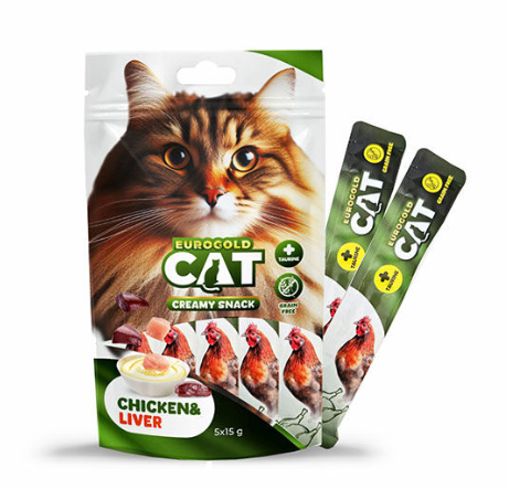 EuroGold Cat Sıvı Kedi Ödülü Tavuk - Ciğer 5x15Gr