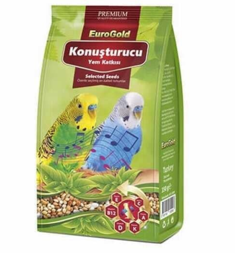 Eurogold muhabbet kuşları ve paraketler için konuşmaya yardımcı yem katkısı özenle seçilmiş tahıl ve tohumlar ile vitamin ve mineral katkıları ile hazırlanmış özel bir yem katkısıdır.
