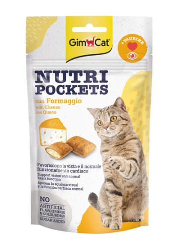 Kıtır kıtır dışı ve lezzetli peynirle dolu içi ile Gimcat Nutri Pockets Peynir&Taurin kedilerin vücutlarında sentezleyemedikleri dolayısıyla besinleri yoluyla almaları zorunlu olan taurin içeriğiyle kedinizin göz ve kalp sağlığı için vazgeçilmez ve çok lezzetli ödüldür.
