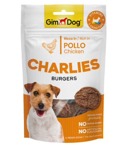 Gimdog Charlies Burgers Tavuklu, tüylü dostlarınızın sağlıklı bir günlük mola vermesi için geliştirilmiş lezzetli, yüksek protein içerikli atıştırmalıklardır! Birkaç basit bileşenden oluşmaktadır. Şeker, tahıl ve yapay tatlar içermez. L-Karnitin sayesinde, sportif köpekler için de idealdir.