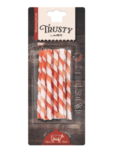 M-PETS Trusty Twisted Sticks, köpeğinize lezzetli ve sağlıklı bir çiğneme deneyimi sunar.