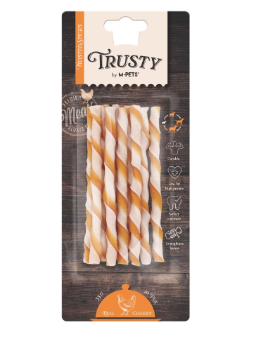 M-PETS TRUSTY TWISTED STICKS – TAVUK AROMALI KIVRIMLI ÖDÜL ÇUBUĞU (12,7 CM)