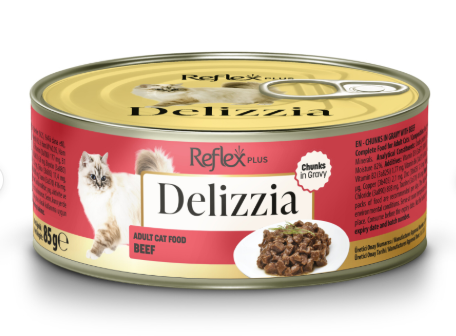 Reflex Plus Delizzia Sos İçinde Dana Parça Etli Yetişkin Kedi Konservesi 85gr