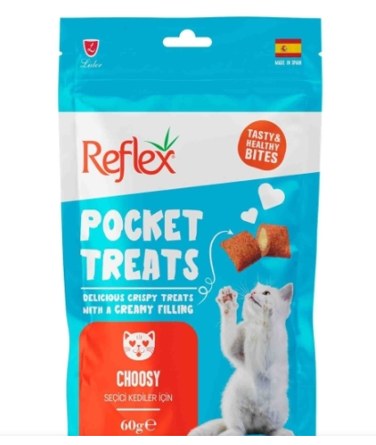 Reflex Pocket Treats, içeriğindeki özel formülü sayesinde seçici kediler için lezzetlendirilmiş peynir içeriğiyle kalp sağlığını destekler. Kediler için özel olarak formüle edilmiştir.