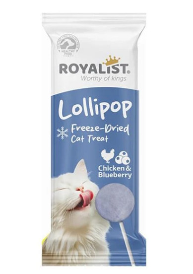 Royalist Lollipop Tavuklu ve Yaban Mersinli Kedi Ödülü, Kediler için dondurularak kurutulmuş ödül maması.