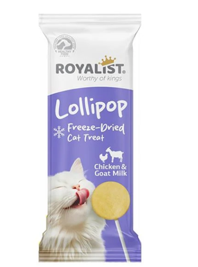 Royalist Lollipop Tavuklu Kedi Keçi Sütlü Kedi Ödülü, Kediler için dondurularak kurutulmuş ödül maması.